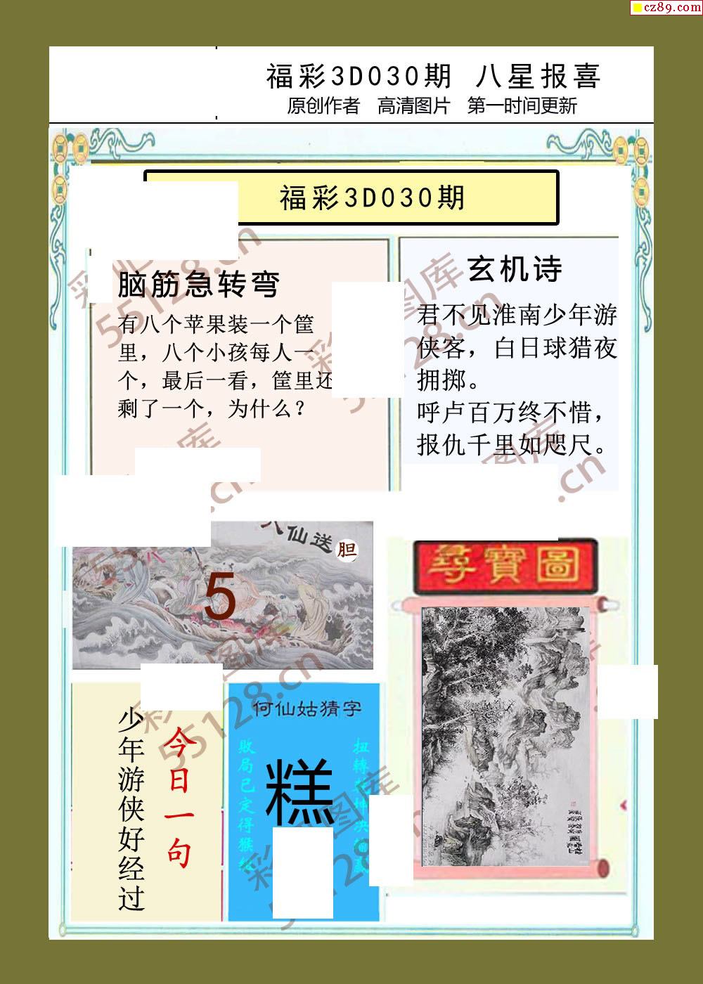 > 八星报喜26年030期福彩3d画谜