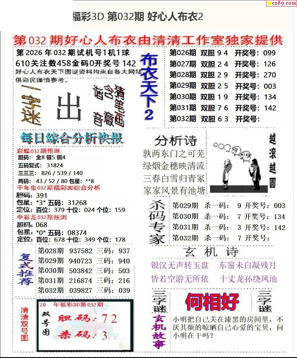 好心布衣2026032期3d图谜