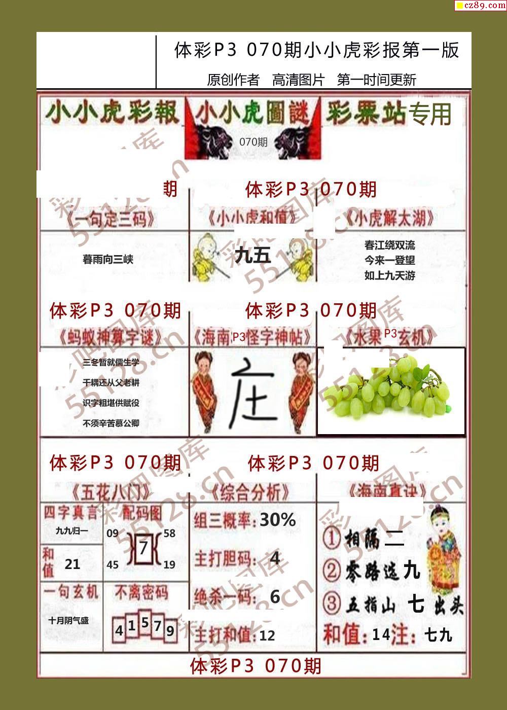 小小虎彩报070期体彩p3图谜