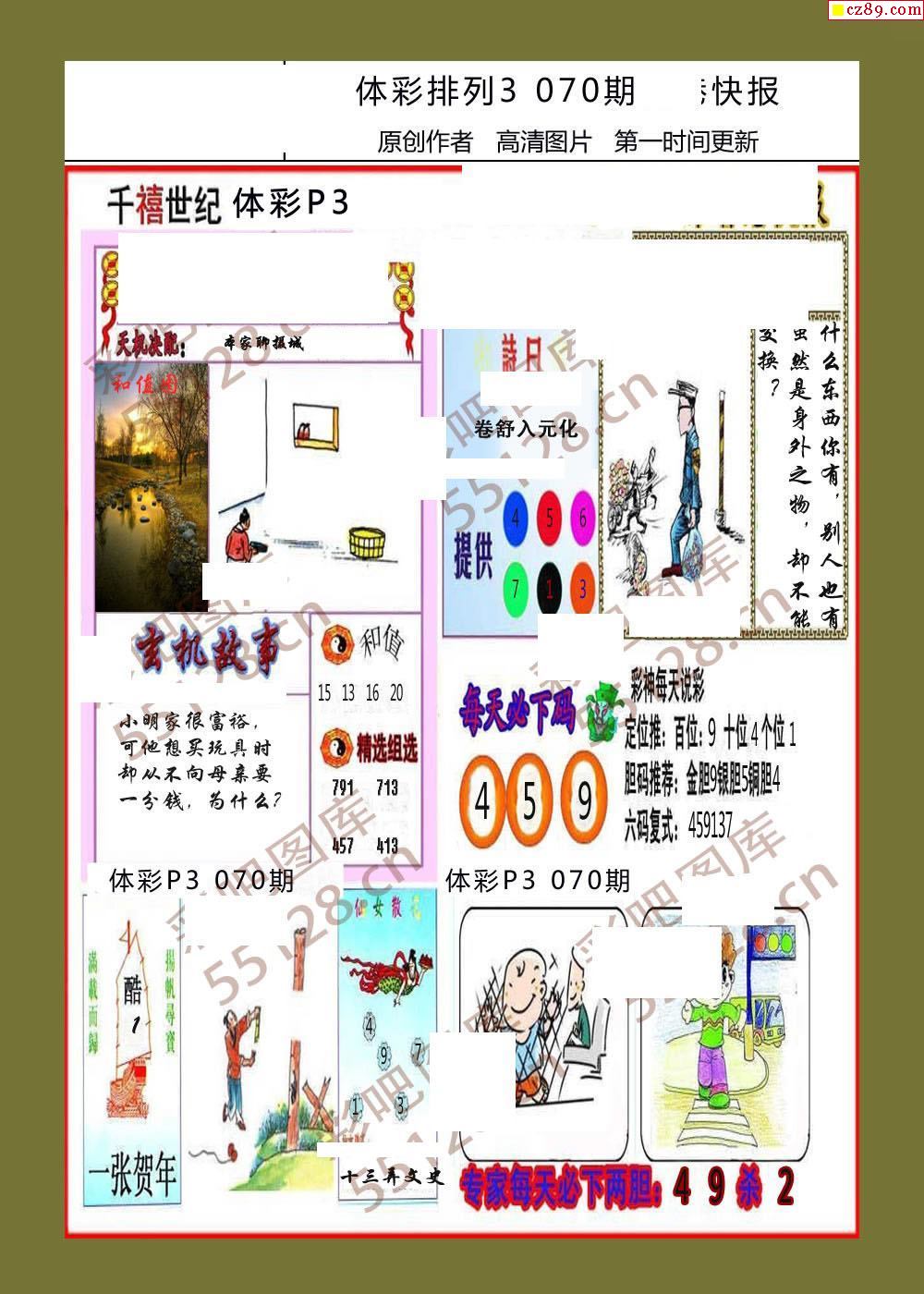 香岛快报070期体彩p3图谜